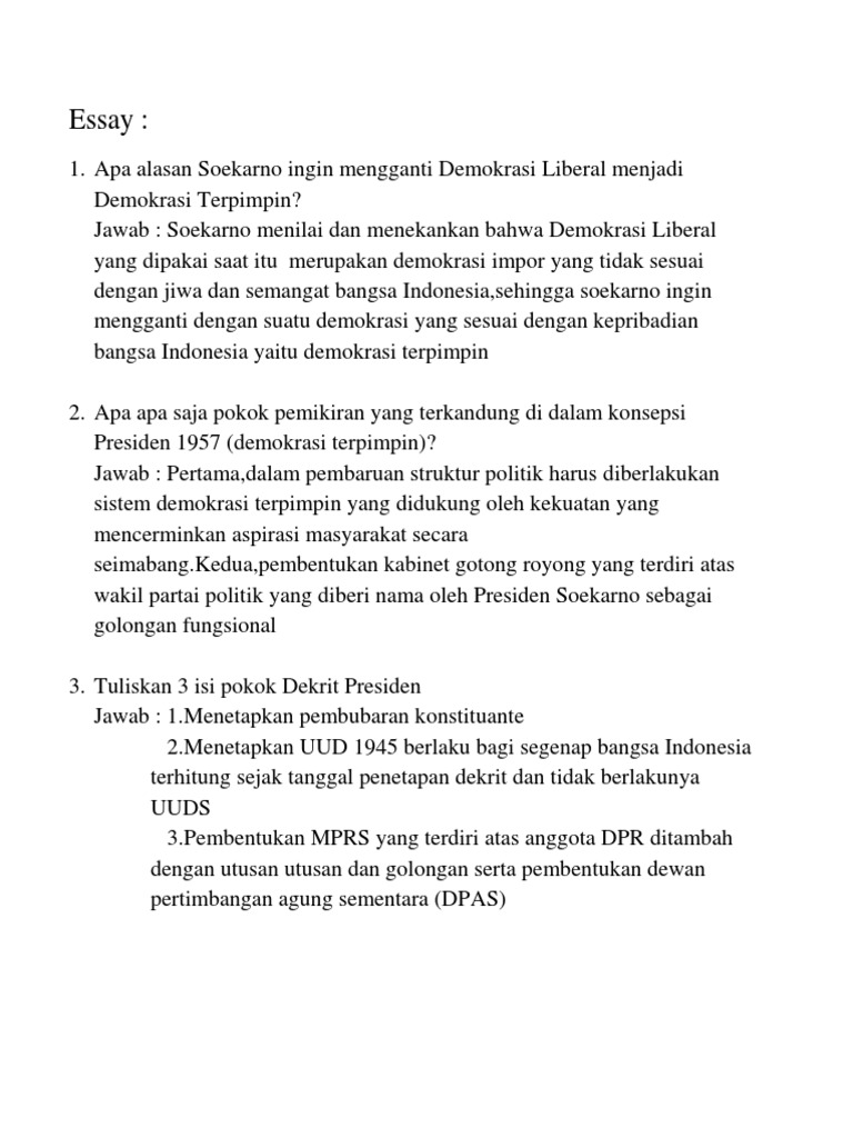 Soal Pilihan Ganda Dan Jawaban Tentang Demokrasi Terpimpin Pilihan Ganda