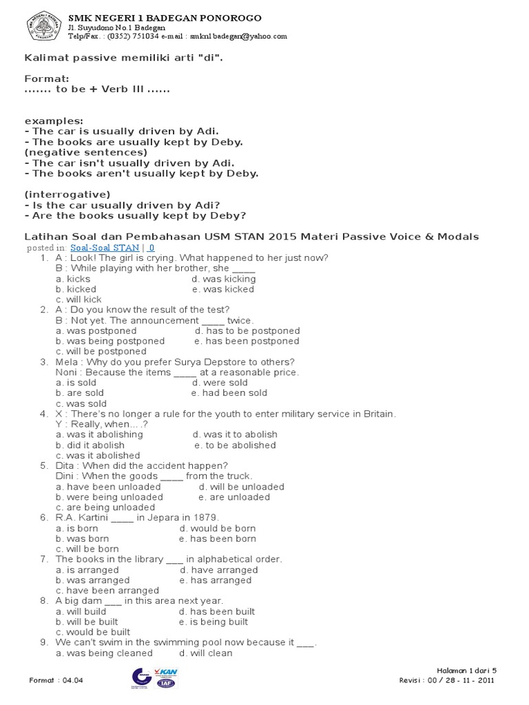 Contoh Soal Passive Voice Pilihan Ganda Jawaban Pembahasan Muttaqin Id