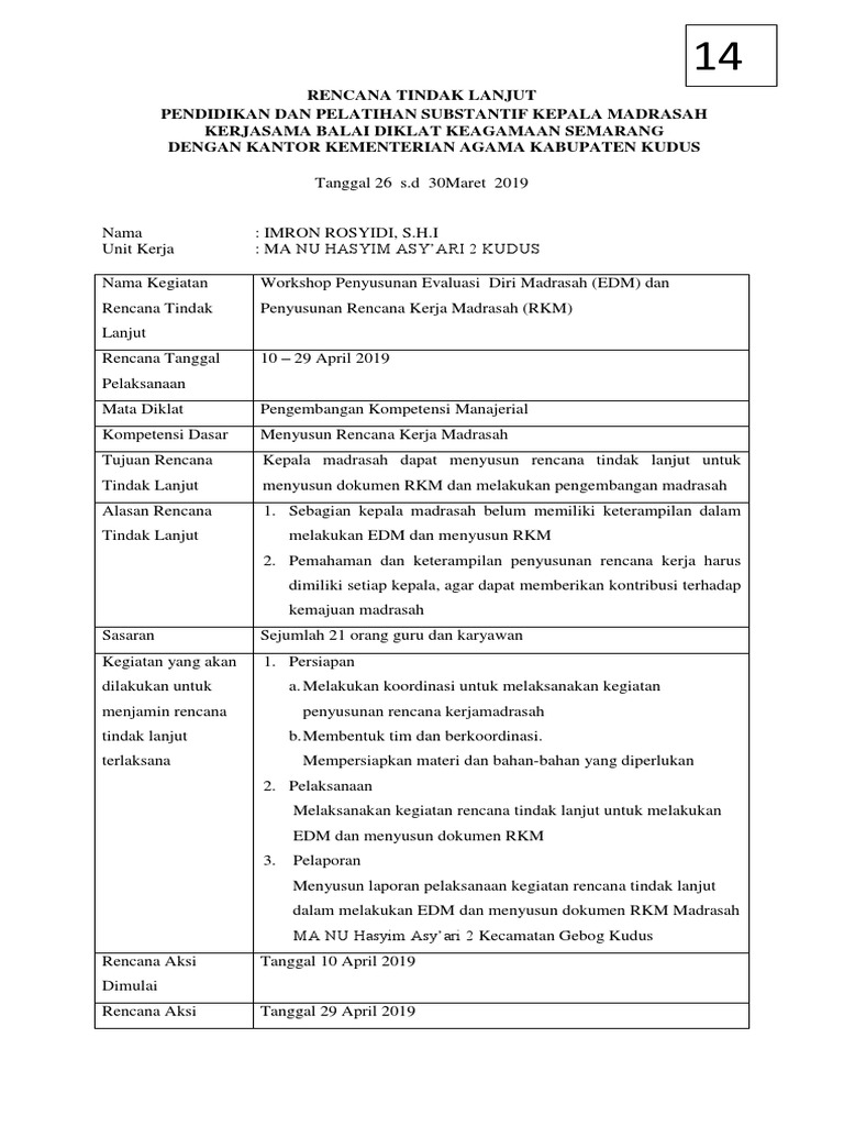 Rtl Kamad Kudus Imron Rosyidi Ma Hasyim 2 Kudus Docx