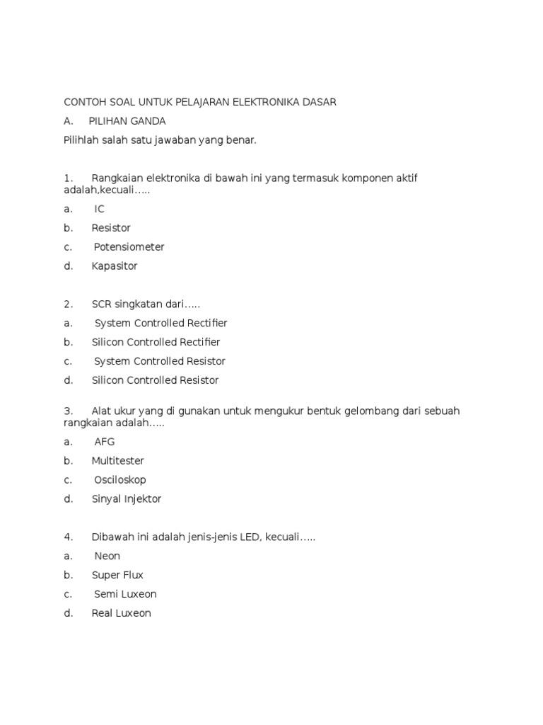 Contoh Soal Pilihan Ganda Elektronika Dasar Dan Jawabannya Dapatkan Contoh
