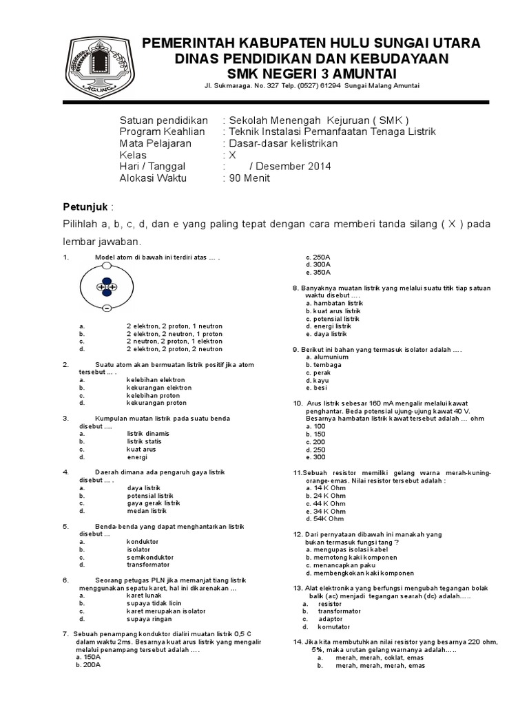 Soal Pilihan Ganda Dasar Dan Pengukuran Listrik X 2014 Hanyar Aja