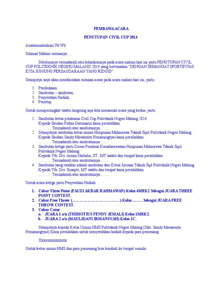 Berita acara penutupan kas penerimaan. Contoh kata sambutan penutupan acara admin kamis april 25 demikian kata sambutan ini saya sampaika terimakasih. Dengan adanya contoh teks MC maka yang bersangkutan menjadi.