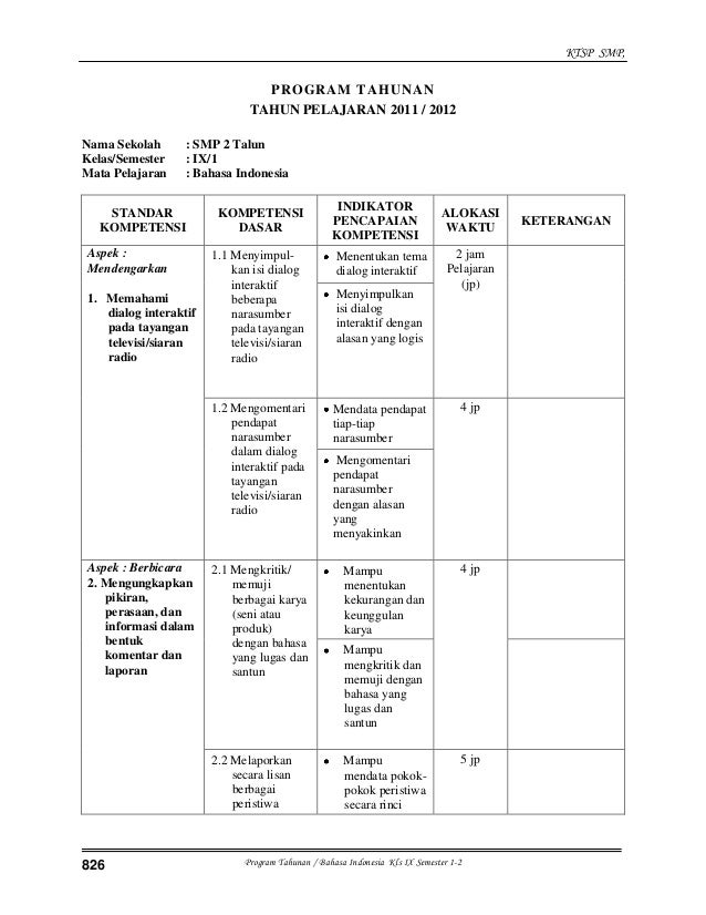 Contoh Prota Program Tahunan Mata Pelajaran Bahasa Indonesia Ppt Download