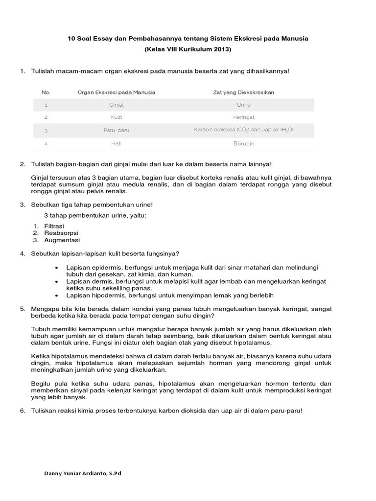 10 Soal Essay Dan Jawaban Tentang Sistem Ekskresi Pada Manusia Materi Kimia