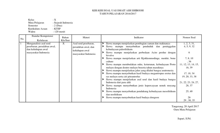 Kisi Kisi Kelas 10 Sejarah 2017 Genap Pdf